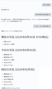 AIは「GoogleGemini」、天気情報は外部サイトを参照するようにし、